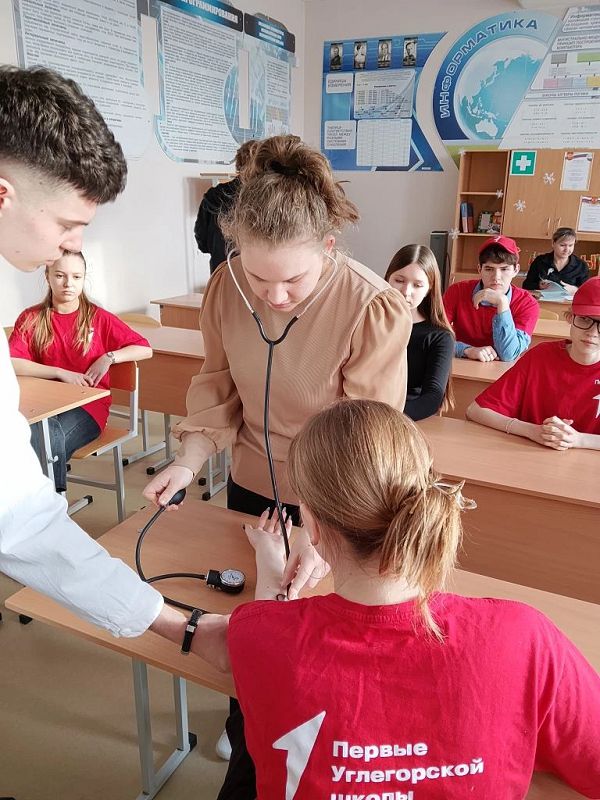 16 января к Первым пришел в гости выпускник нашей школы, а теперь студент 4 курса лечебного факультета Медицинского института Пензенского государственного университета Атинян Эдгар. Эдгар рассказал о выбранной профессии хирурга и об особенностях обучения на факультете. В конце занятия обучающиеся учились измерять давление.