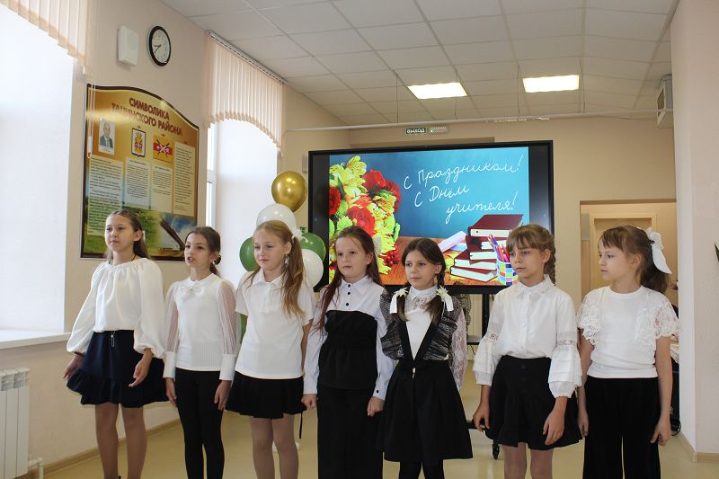 В этот праздничный день в нашей школе был организован праздничный концерт, посвященный Дню учителя. В нём приняли участие обучающиеся школы. Не забыли о педагогах воспитанники д\с «Вишенка», которые пришли поблагодарить учителей за их нелегкий труд.