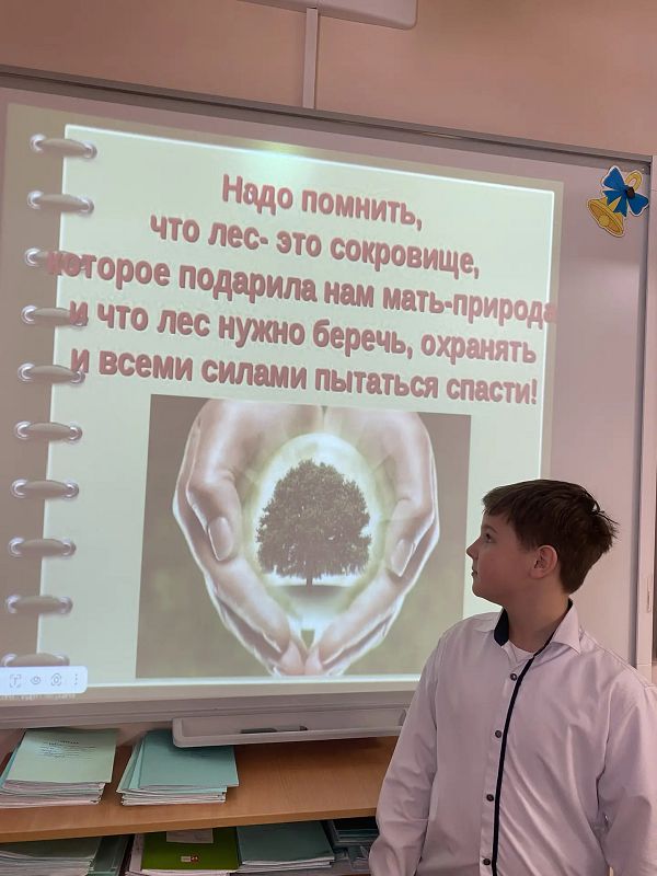 Ребята говорили о Международном дне леса, о том, что задачей этого дня является привлечение внимания жителей планеты к проблеме сохранения лесов, информирование о значимости лесных экосистем, их подлинном состоянии, основных мерах их защиты и восстановления. Вспомнили о правилах поведения в лесу.