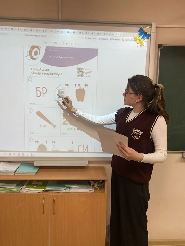 Обучающиеся 5 класса приняли участие в интерактивной блиц - игре "Какой ты инвестор", где определили свой инвестиционный портфель. Разгадали ребусы, в которых были зашифрованы ключевые термины: Биржа, инвистиции, дивиденды, брокер и др.