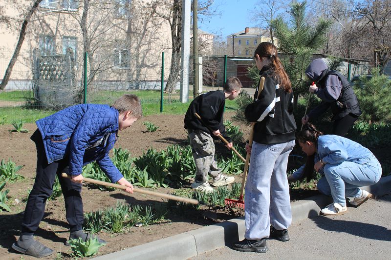 Дружно вооружившись тяпками, граблями и мешками для мусора, после уроков, ученики, вместе с классными руководителями навели порядок на территории школы. Была сделана большая работа по уборке клумб, был приведен в надлежащий порядок школьный двор и убран мусор.