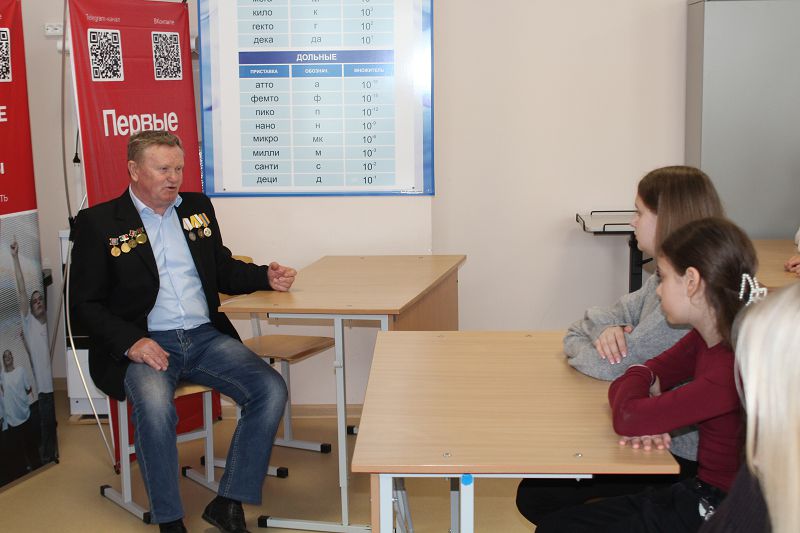 27 апреля в Углегорской школе прошла встреча с ликвидатором последствий аварии на Чернобыльской АЭС, Владимиром Михайловичем Ивановым, организатором которой выступили председатель первичного отделения Движения Первых Фильцева Марина и советник директора по воспитанию Овчарова Ольга.