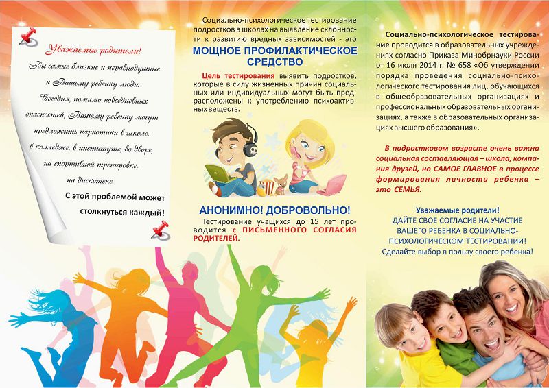 Уважаемые родители! В образовательных организациях Российской Федерации ежегодно проводится масштабное тестирование социально значимых характеристик личности современных детей и подростков. Тестированию подлежат обучающиеся всех без исключения общеобразовательных и профессиональных образовательных организаций, а также образовательных организаций высшего образования.