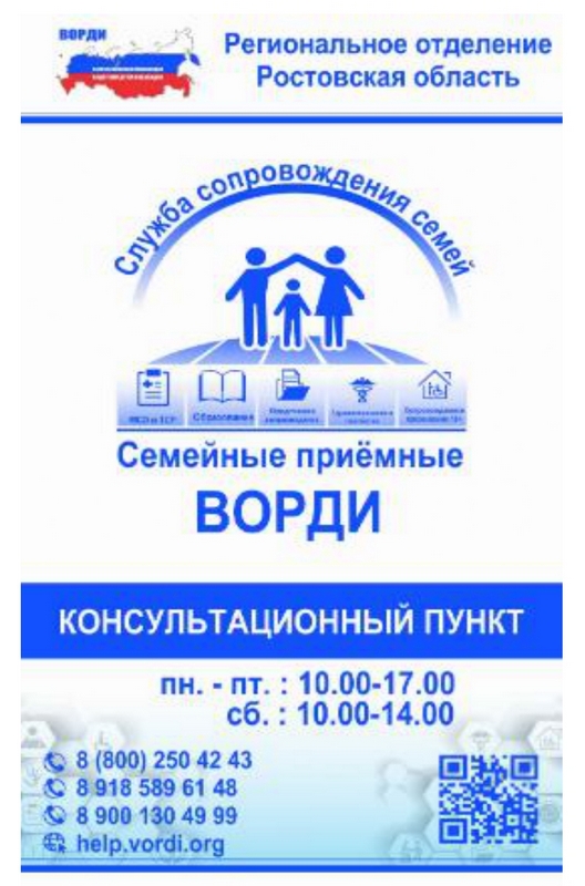Министерство общего и профессионального образования Ростовской области информирует об открытии консультационного пункта «Семейная приемная ВОРДИ» на базе Регионального отделения Всероссийской организации родителей детей-инвалидов и инвалидов старше 18 лет с ментальными и иными нарушениями, нуждающихся в представительстве своих интересов, Ростовской области.