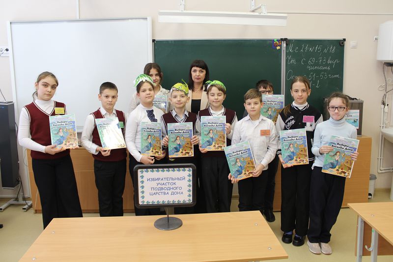 18 февраля обучающиеся 4 класса Углегорской школы приняли участие в увлекательной познавательной игре под названием «Выборы Воеводы Дона», организованной Территориальной избирательной комиссией Тацинского района. Кандидатами в Воеводы Дона стали речные жители: Сом, Щука и Рак. Каждый из них представил свою избирательную программу, рассказывая о том, как они собираются заботиться о подводном мире и его обитателях.