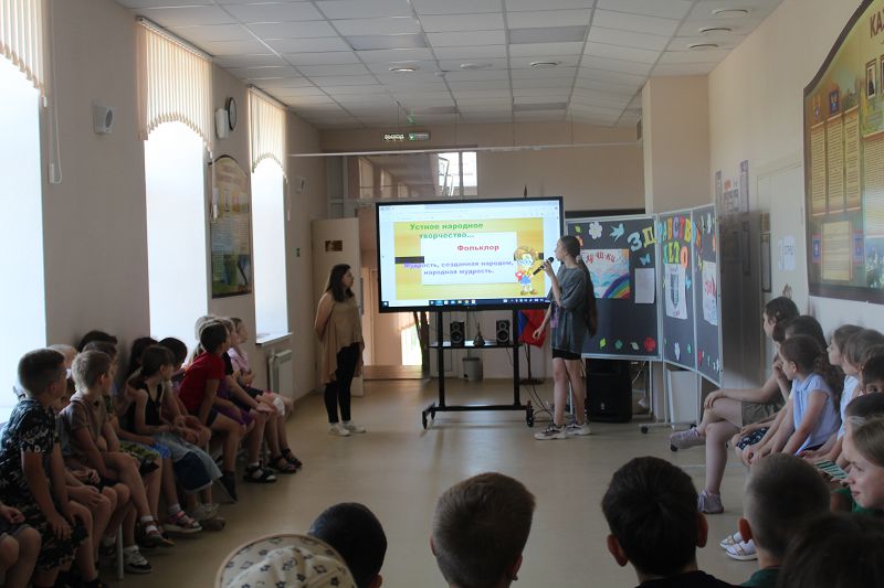 Очередной день в «Содружестве Орлят России» начался с зарядки на свежем воздухе, которая зарядила всех энергией на весь день. С ребятами провели инструктаж о безопасном поведении летом. После вкусного завтрака состоялась информационная линейка, где с воспитанниками говорили о фольклоре. Не обошлось и без спортивных и интеллектуальных игр.