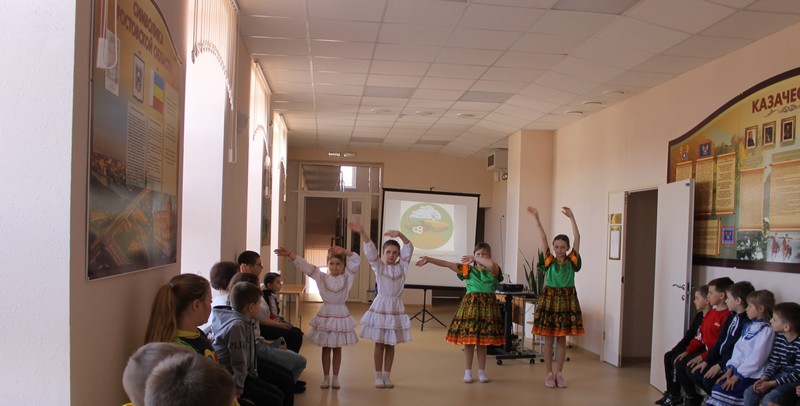 Сегодняшний день пришкольного оздоровительного весеннего лагеря был очень насыщенным и посвящен танцам народов России. На эту тему дети нарисовали мини-плакаты, на которых были изображены представители народов России: татары, калмыки, башкиры, чеченцы, русские и другие. На утренней линейке был показан интересный и познавательный фильм «Танцы народов России».