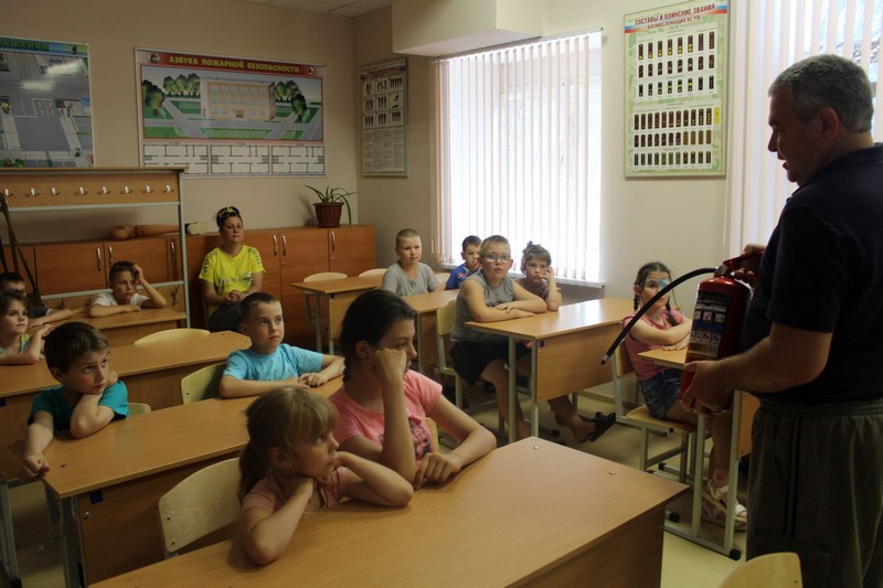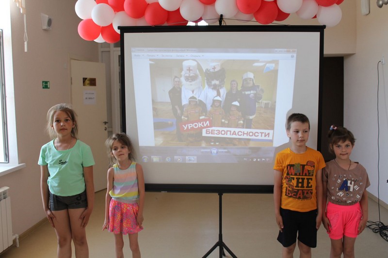 Также был проведен «Урок БезОпасности» с воспитанниками лагеря, в ходе которого дети научились пользоваться огнетушителем и получили навыки выполнения искусственного дыхания. Вожатая лагеря провела викторину, в результате которой оба отряда набрали одинаковое количество баллов.