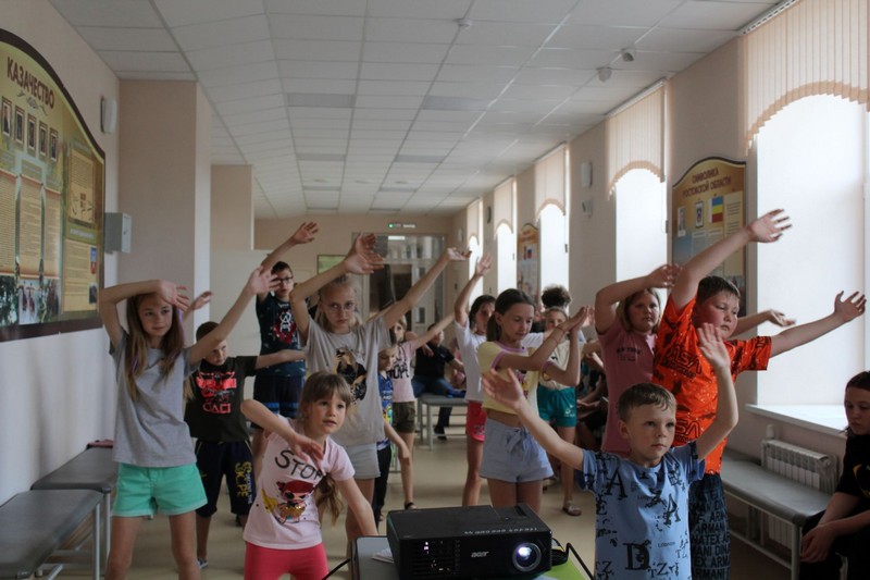 Во время пребывания на свежем воздухе дети вспомнили различные виды спорта: футбол, волейбол, баскетбол и др. Была показана презентация «Российские виды спорта». В лагере дети пели и танцевали под руководством вожатых. Ребятам нравится в лагере, они с удовольствием ходят каждый день.