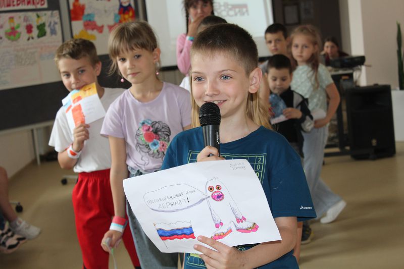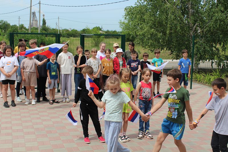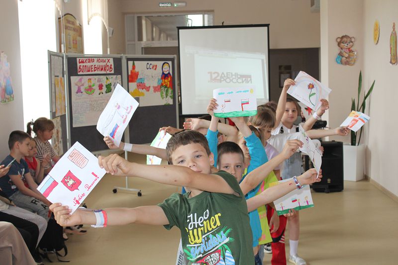 Сегодняшний день в лагере был посвящен Дню России. После зарядки и завтрака ребята посетили Углегорскую библиотеку и студию танца. Состоялся массовый флешмоб и занятие по строевому шагу. На итоговой линейке ребята говорили о России, о ее символике, территории, пропели гимн, провели рефлексию «Цвета флага». Символом дня стала матрешка, которая у каждого получилась своя. Главный волшебный урок дня:«Нужно быть патриотом своей Родины».