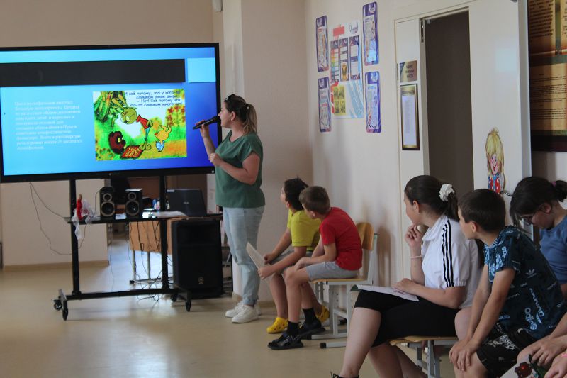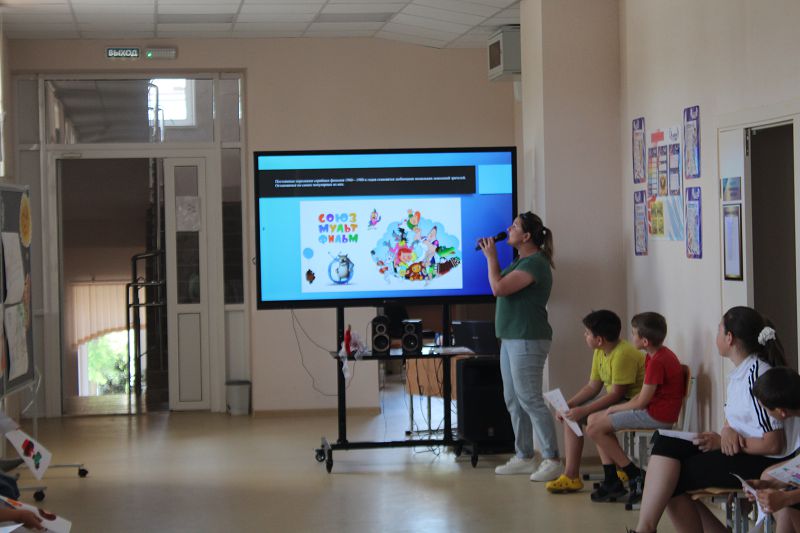 В этот день для ребят провели познавательную беседу об истории создания мультфильмов, о студии "Союзмультфильм", на которой были сняты советские мультфильмы, а также была проведена викторина.