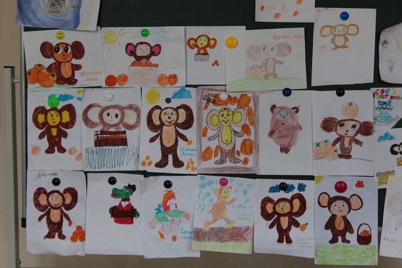 И в завершении дня был проведён конкурс рисунков "Рисуем героя советских мультиков". Любимцем детворы стал мультипликационный герой Чебуршка.