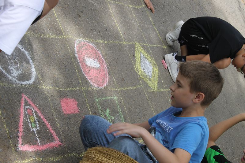 После вкусного обеда состоялся конкурс рисунков на асфальте «Лето-безопасность!». Отряды рисовали знаки и эмблемы. В конце дня подвели итоги рефлексией и веселыми песнями в караоке.