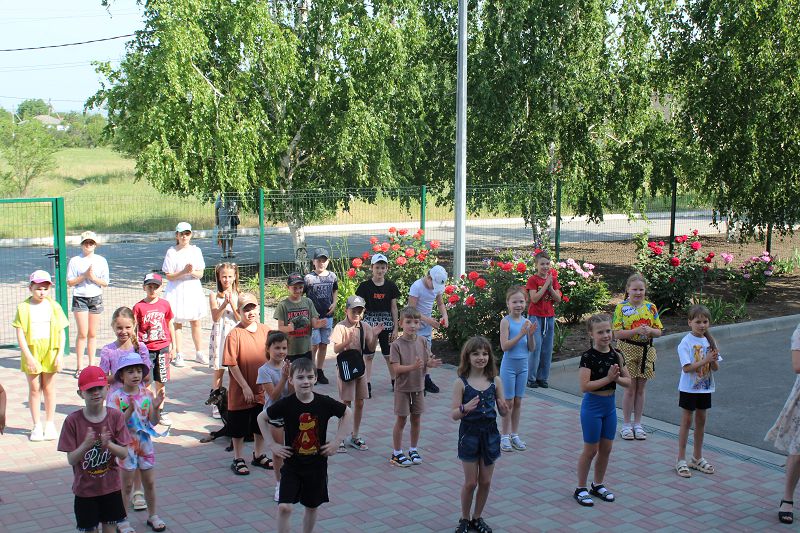 Очередной день в нашем лагере начался с зажигательной зарядки. После вкусного завтрака ребята отправились на линейку, которая была посвящена Дню России. Дети исполнили Гимн РФ, а также прочли стихи о Родине, прослушали информацию о символах нашей страны, отгадывали загадки о городах России. После линейки дети отправились в Углегорский СДК, где для них был подготовлен праздничный концерт. После обеда была проведена рефлексия.