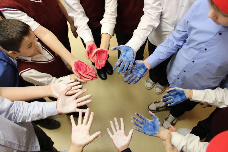 После познавательной части мероприятия ребята проявили свою творческую активность. Каждый разукрасил свою ладошку в цвета триколора.