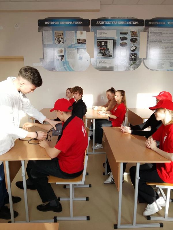 16 января к Первым пришел в гости выпускник нашей школы, а теперь студент 4 курса лечебного факультета Медицинского института Пензенского государственного университета Атинян Эдгар. Эдгар рассказал о выбранной профессии хирурга и об особенностях обучения на факультете. В конце занятия обучающиеся учились измерять давление.