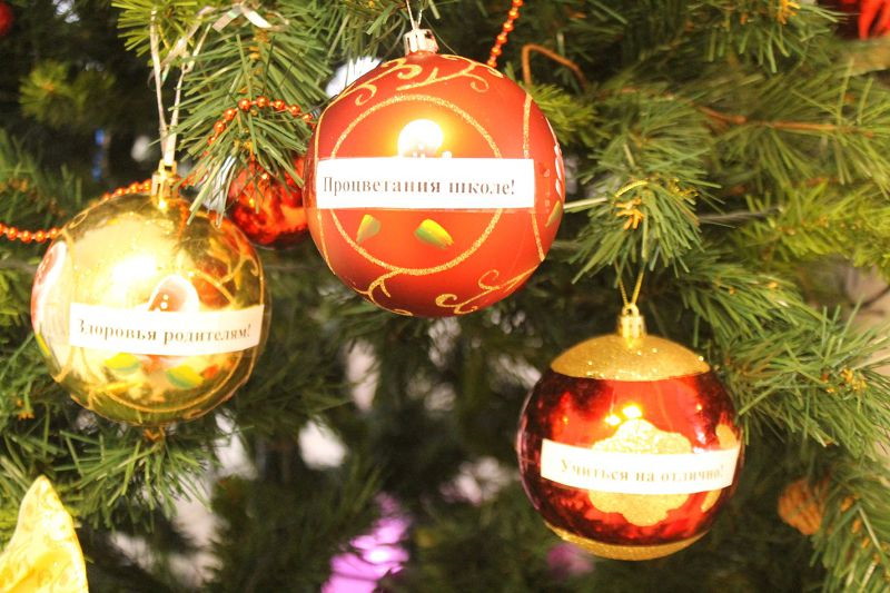 В фойе Углегорской школы учащиеся нарядили елку в шары со своими желаниями. Каждый шар - это одна заветная детская мечта, которая теперь обязательно исполнится, благодаря волшебной акции "Ёлка желаний".