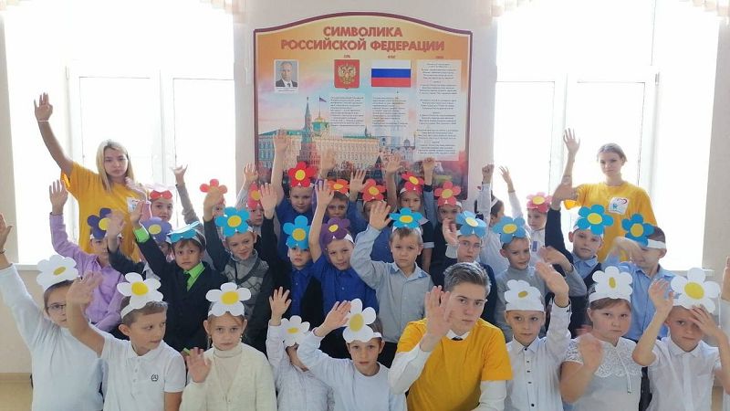 Обучающиеся начального звена, совместно с отрядом "Волонтер" провели праздничную акцию "Хоровод единства". Единение народов под флагом России ребята выразили взявшись за руки.