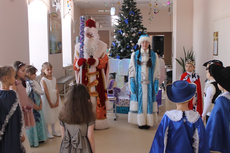 Дети с большим удовольствием пели песни, водили хороводы, рассказывали стихи и участвовали в весёлых играх. Дедушка Мороз и его внучка Снегурочка подарили детям замечательные подарки.