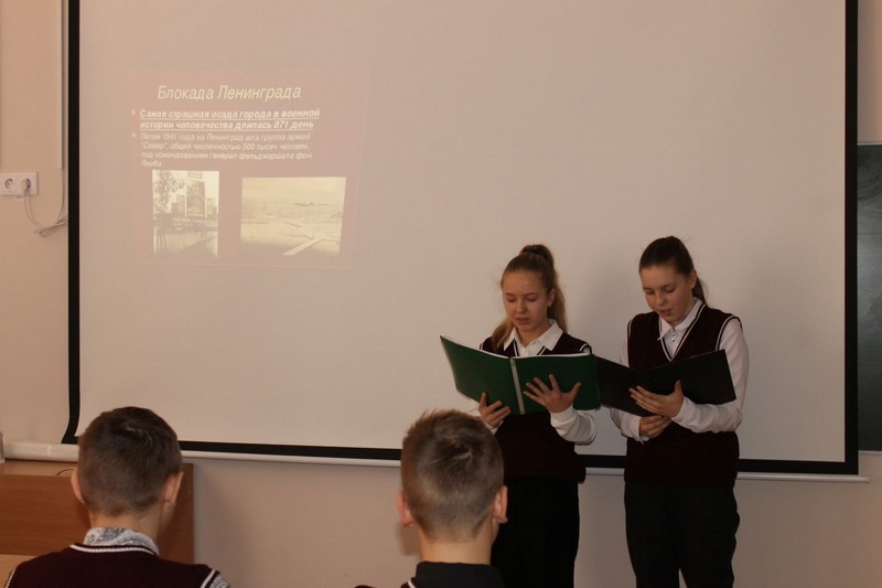 27 января в 7 классе прошел Урок мужества, посвященный Дню полного освобождения Ленинграда от фашистской блокады.