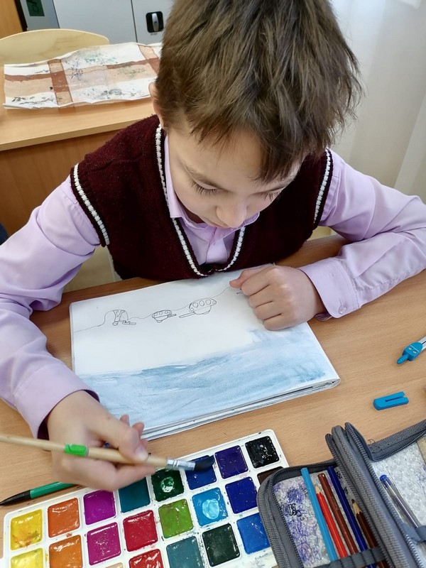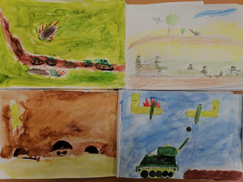 Из документального фильма третьеклассники узнали, какой была Великая Отечественная война для их ровесников, сравнили собственное детство с детством ребят военных лет. Рассуждали, анализировали и пришли к выводу о том, что принадлежат к счастливому поколению людей. Классный час завершился выставкой рисунков на военную тему.
