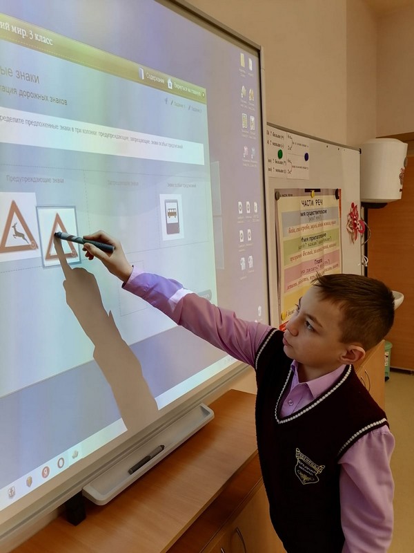 В 3 классе проведено практическое занятие «Дорожное движение достойно уважения». Третьеклассники вспомнили значение дорожных знаков через викторину и интерактивную игру.