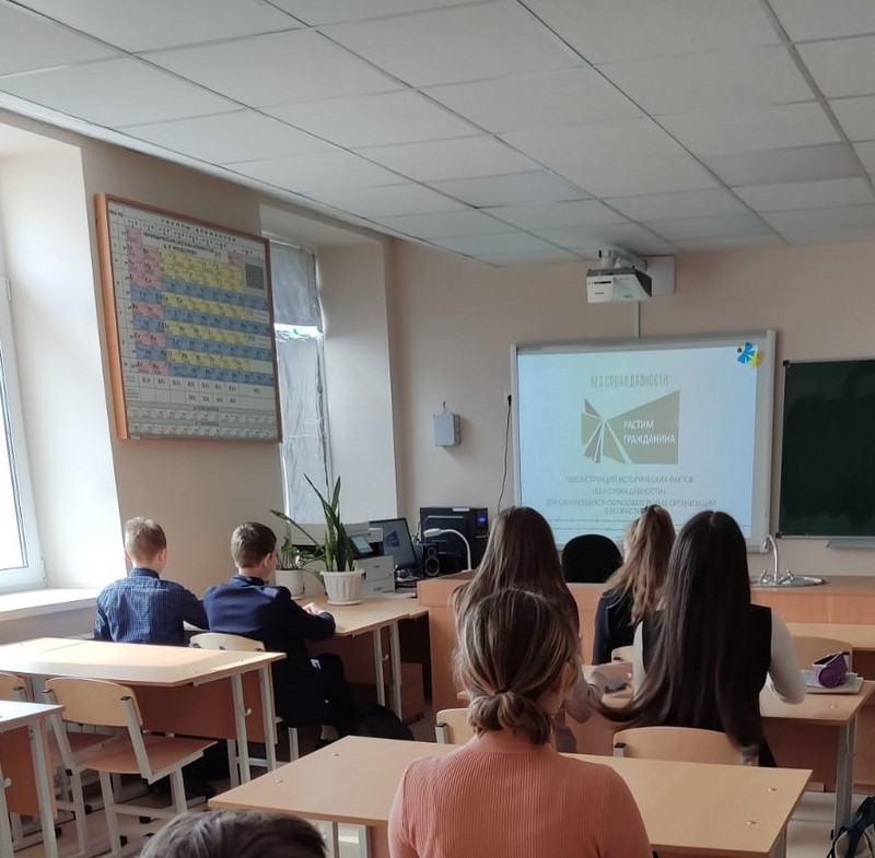 19 апреля восьмиклассники провели урок в память о жертвах преступлений против советского народа, совершенных нацистами и их пособниками в годы Великой Отечественной войны, с просмотром видеофильма «Без срока давности».