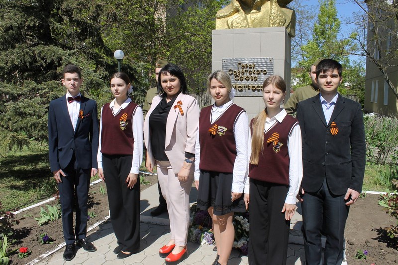 В канун празднования Дня Победы старшеклассники Углегорской школы, совместно с Главой Углегорского сельского поселения совершили возложение цветов к памятнику А.Матросову.