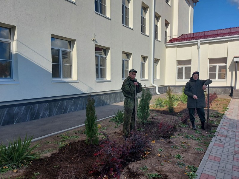 Углегорская школа в 2022 году приняла участие в акции «Сад памяти». Ребята высадили на пришкольном участке саженцы туй и юкк, несколько кустов роз.