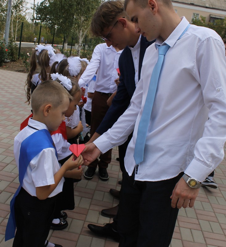 1 сентября обучающиеся первого и одиннадцатого классов заложили новую традицию для всех последующих школьников. Старшеклассники из бумаги сделали самолетики и написали на них пожелания первоклассникам, вручили их на торжественной линейке, посвященной Дню Знаний. Самолетики поместили в капсулу времени , которую откроют через год.