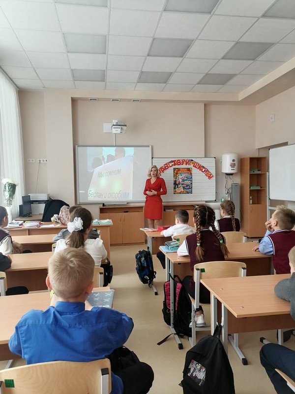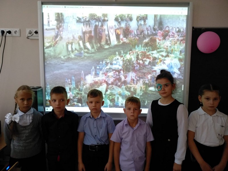Для начального звена 5 сентября были проведены Уроки Мужества «Эхо Бесланской печали». Ребята узнали о печальных событиях 2004 года, которые произошли с их сверстниками. Почтили память погибших минутой молчания. Завершили все выставкой рисунков, которые посвятили мирному детству.
