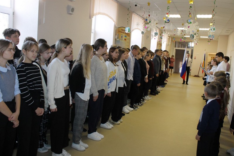 9 декабря в школе прошла итоговая линейка спуска флага. Она была посвящена Дню Героев Отечества.