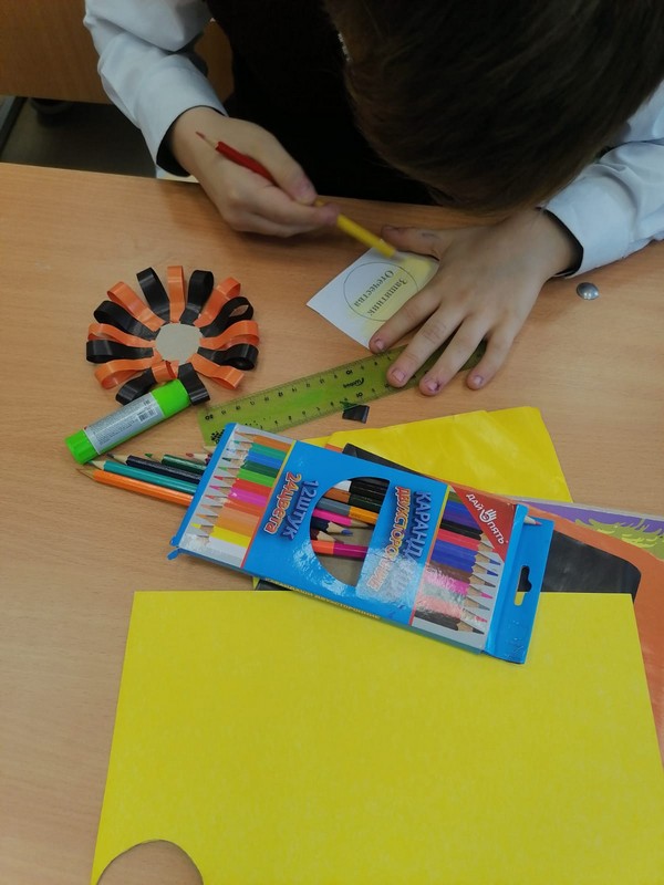 Сегодня ученики 4 класса, продолжая тематику доблести и мужества, решили подготовить к предстоящему празднику нагрудный знак «Защитник Отечества», который подарят своим родным.