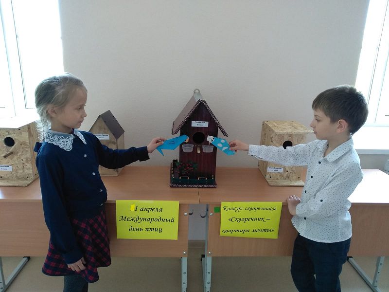 3 апреля в рамках Дней защиты от экологической опасности обучающиеся начального звена Углегорской школы провели акцию ко Дню птиц. Дети устроили выставку скворечников и некоторые работы поместили на деревья.