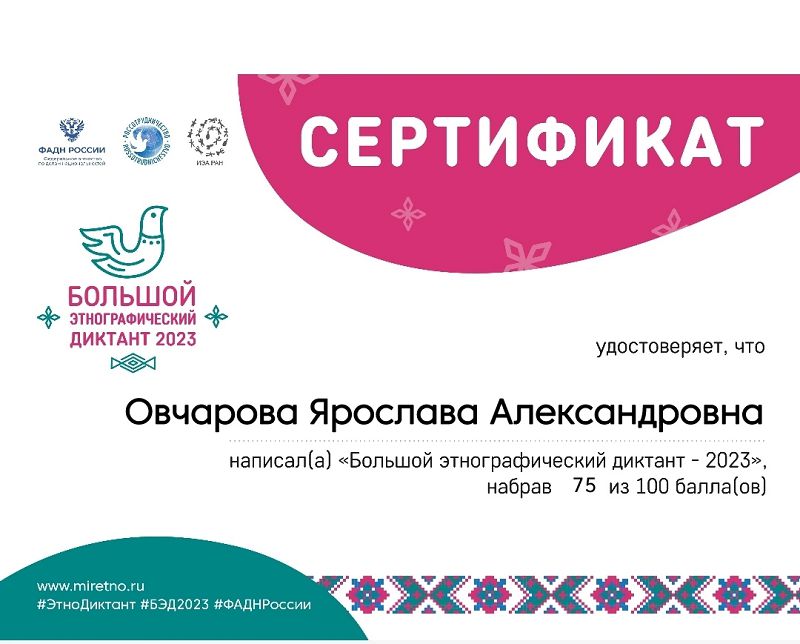 С 3 по 8 ноября проходила ежегодная акция "Большой этнографический диктант", которая знакомит с культурой народов, проживающих в России, а ещё позволяет оценить общий уровень этнокультурной грамотности. Участниками большого этнографического диктанта в нашей школе стали учащиеся, их родители и педагоги.