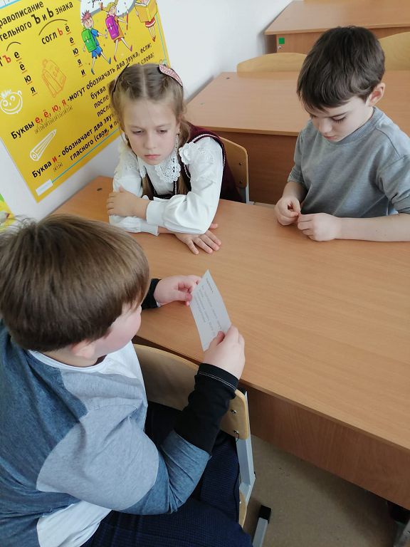 Ребята выполнили задание «Речевой этикет». Им раздали карточки с описанием ситуации. Детям нужно было, используя уместные речевые формулы, обратиться за помощью в поиске книги к библиотекарю или познакомить друга с родителями.