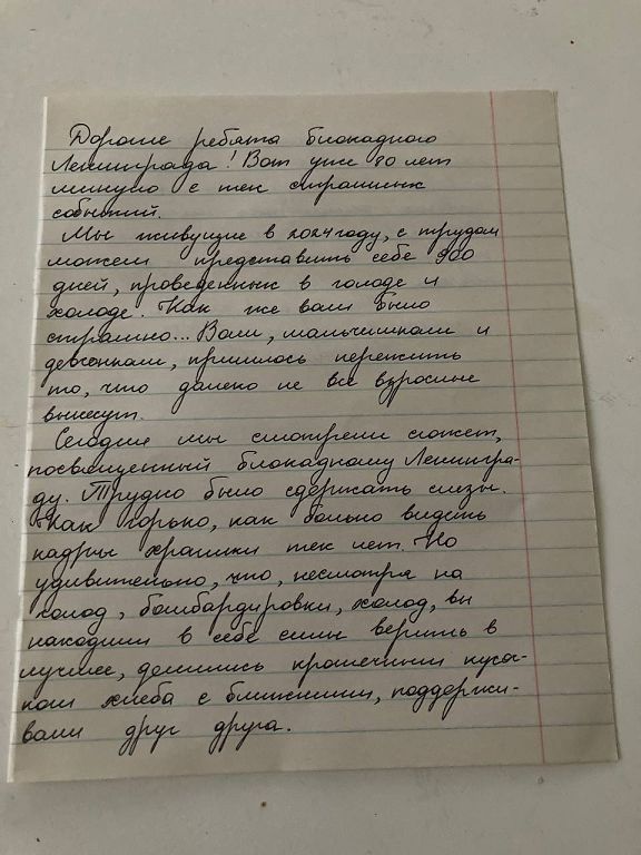 В рамках акции обучающимся необходимо было написать письмо из настоящего времени жителям и защитникам Ленинграда.