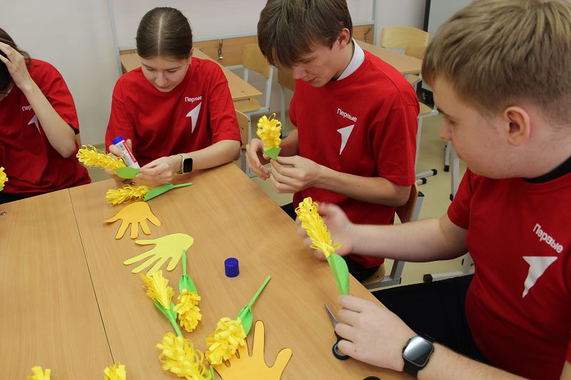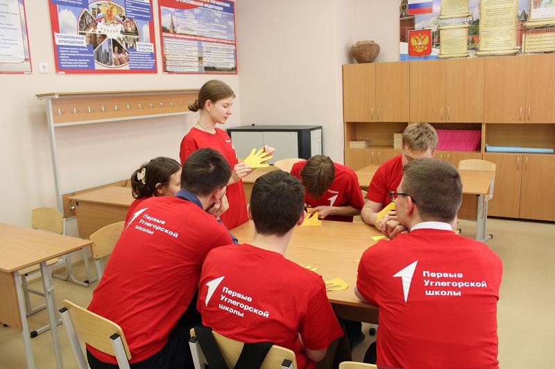 20 февраля в Углегорской школе состоялся Кампус Первых. Ребята стали участниками тренинга «5 пальцев одной руки», который заключается в следующем: за каждым пальцем руки закреплен один из механизмов групповой работы. В команде Первые сделали цветы для своих мам.