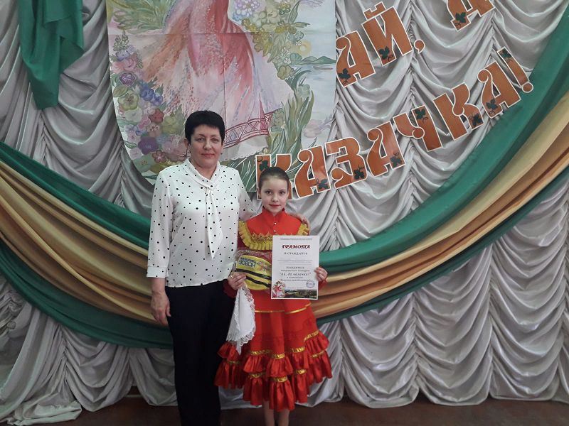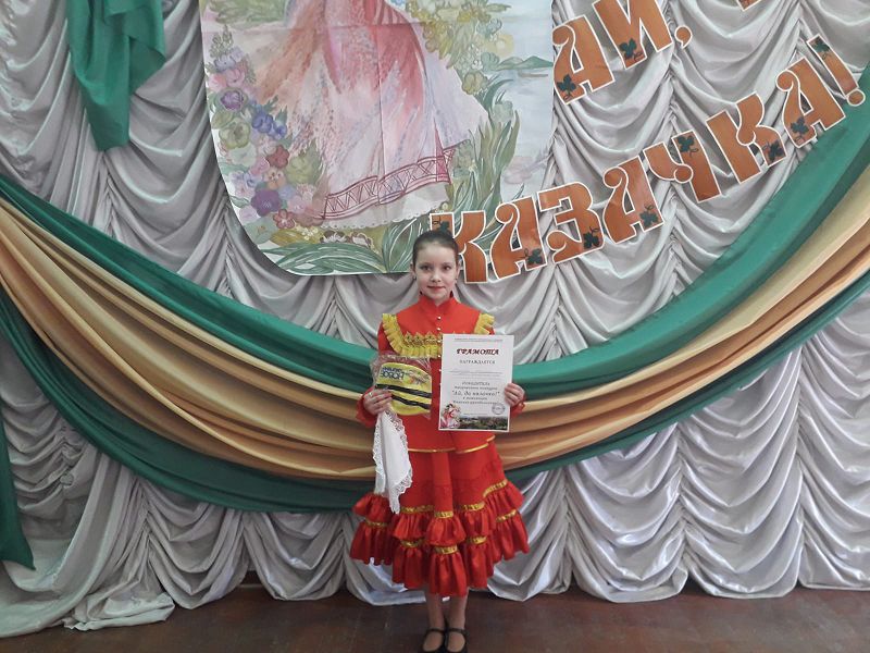 26 марта в ДДТ в рамках реализации казачьего компонента состоялась конкурсная программа «Ай, да казачка!», в которой приняла участие обучающаяся 5 класса Ткачева Полина. Полину поддержала сестра Мария. Благодаря общим усилиям родителей, наставника Кухарской Л.А. Полина заняла второе место.