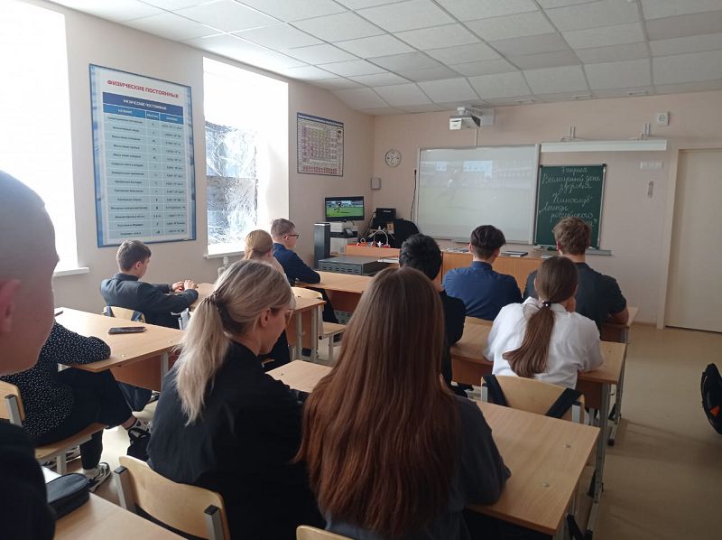 Также обучающиеся школы просмотрели недавние интервью выдающихся спортсменов из плейлистов от Российского Общества «Знание» со Всемирного фестиваля молодежи 2024.