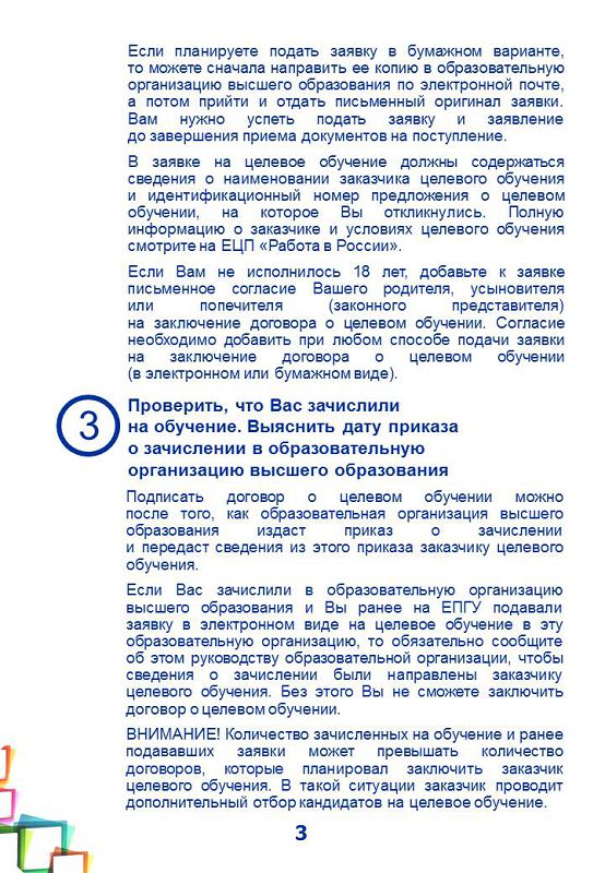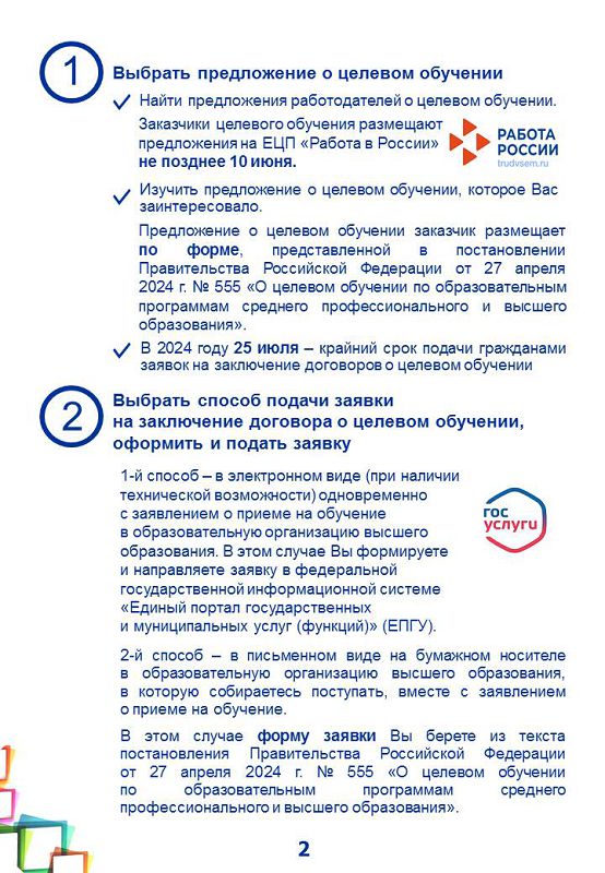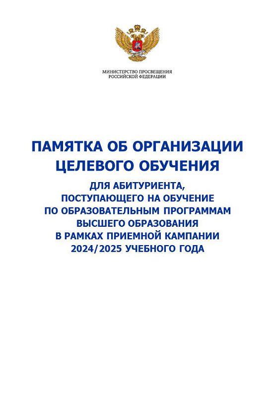 Памятка об организации целевого обучения для абитуриента, поступающего на обучение по образовательным программам высшего образования в рамках приемной кампании в 2024/25 учебном году.
