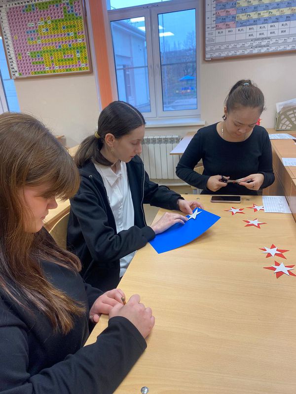 Старшеклассники провели акции "Добрый талисман" и "Связь поколений". Дети создали талисманы для военнослужащих и окопные свечи, которые будут переданы в муниципальный штаб акции.