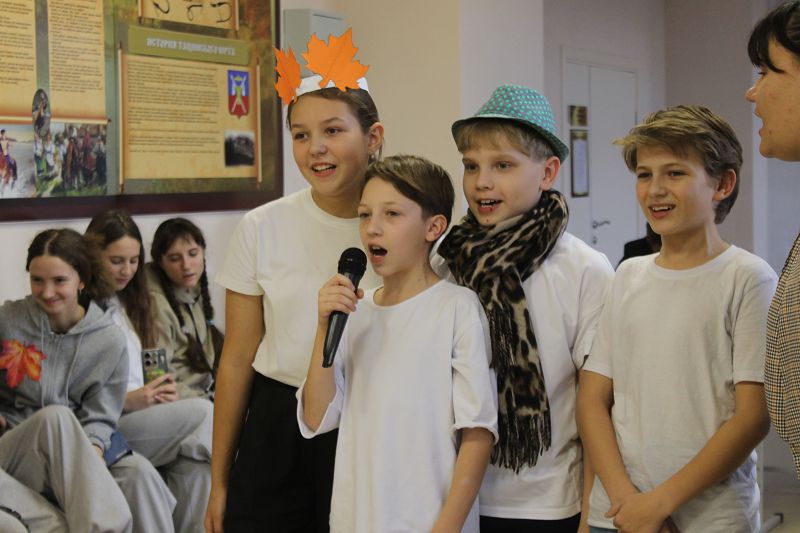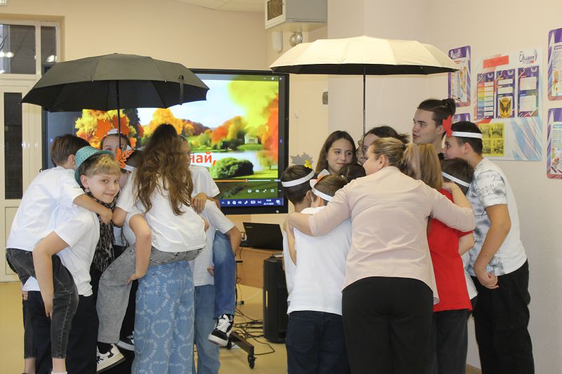 Ребята защищали свои осенние поделки, собирались под осенним зонтиком, танцевали в парах, пели караоке и играли в «Шишкобол». Вечер был наполнен смехом, радостью и, конечно же, кленовыми листьями.