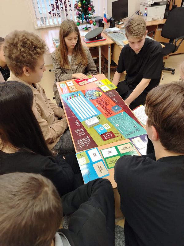 12 декабря в День Конституции в 9 классе организована настольная образовательная игра "Земля Демократии". Ребята приняли участие в выборах президента новой страны под названием «Полис». Они прошли регистрацию кандидатов, поучаствовал в предвыборной гонке и голосовании. В ходе игры ученики расширили свои знания по избирательному праву и получили удовольствие от игрового процесса.