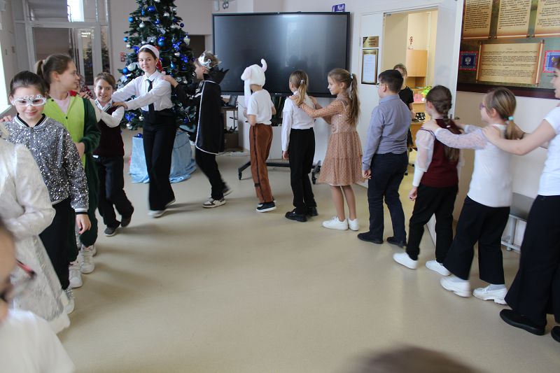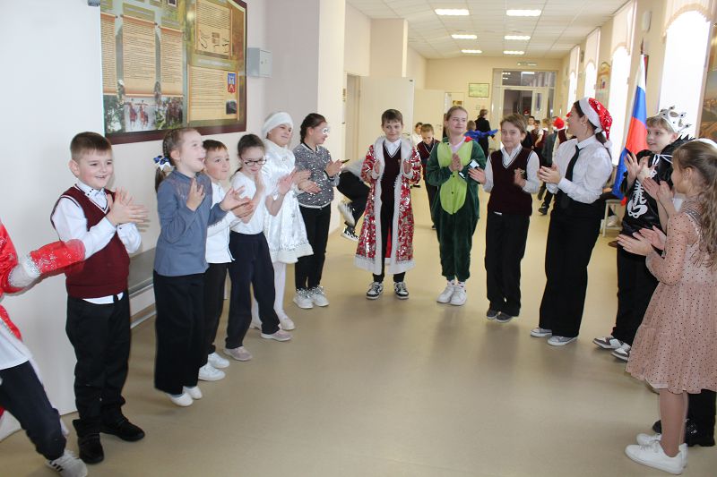 В течение дня дети ходили друг к другу с веселыми щедровками, Советник директора по воспитанию и взаимодействию с детскими общественными объединениями Овчарова О.М. устроила для обучающихся 1-5 классов музыкальные игры на переменах, ребята делились традицией празднования Старого Нового года в своей семье.