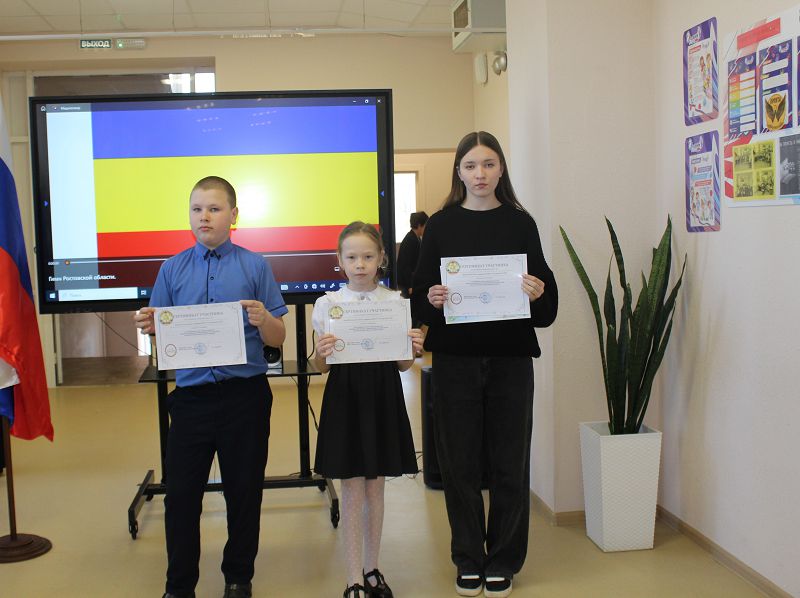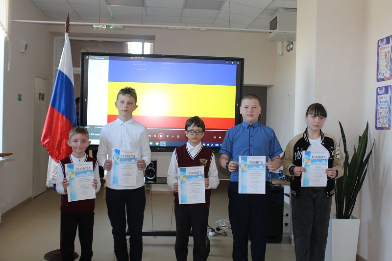 4 апреля в школе прошла линейка, где ребята прослушали Гимн Ростовской области и получили долгожданные награды. Были вручены грамоты, сертификаты и дипломы победителей за участие в муниципальном этапе областного конкурса «ПРОдвижение», за участие в экологическом форуме «Изменение климата глазами детей», за участие в муниципальном этапе конкурса детско-юношеского мастерства «Неопалимая купина». Отряд ЮИД «Веселый перекресток» получил несколько грамот.