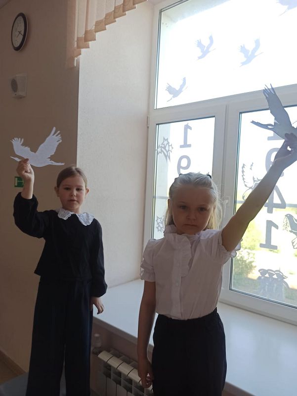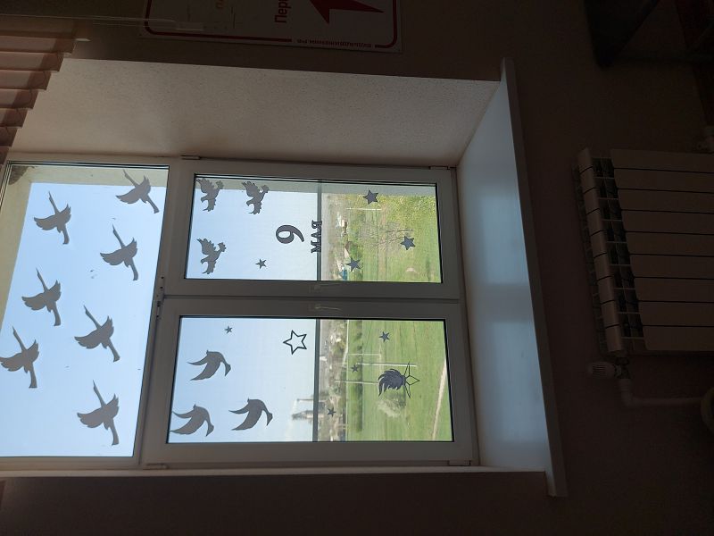 В преддверии 80-летия Победы в Великой Отечественной войне обучающиеся Углегорской школы, активисты Движения первых и педагоги украсили окна школы.