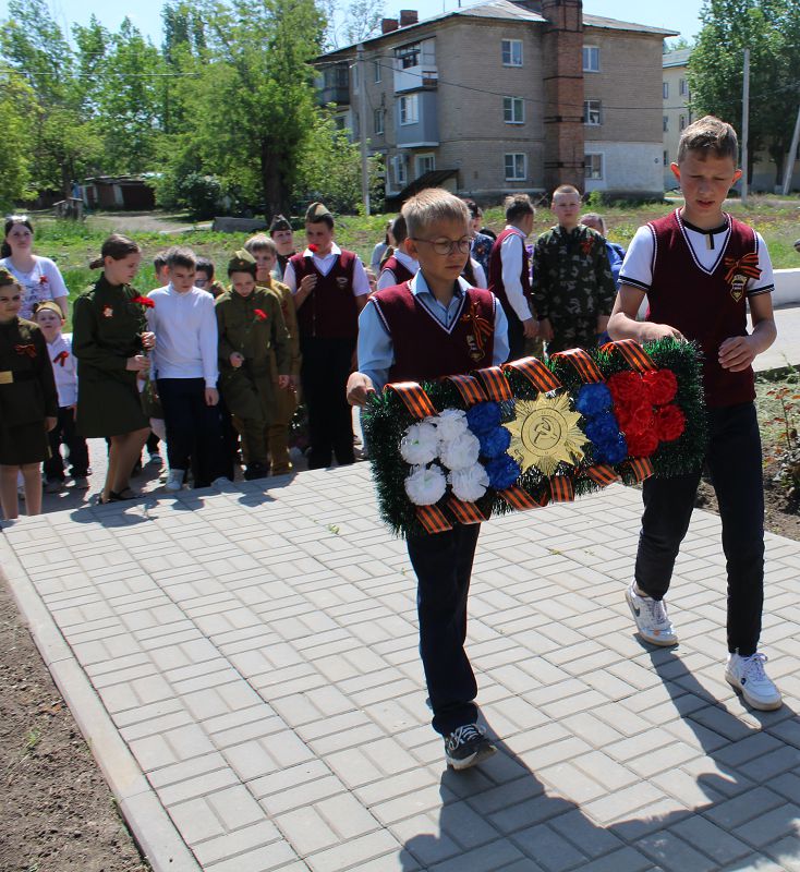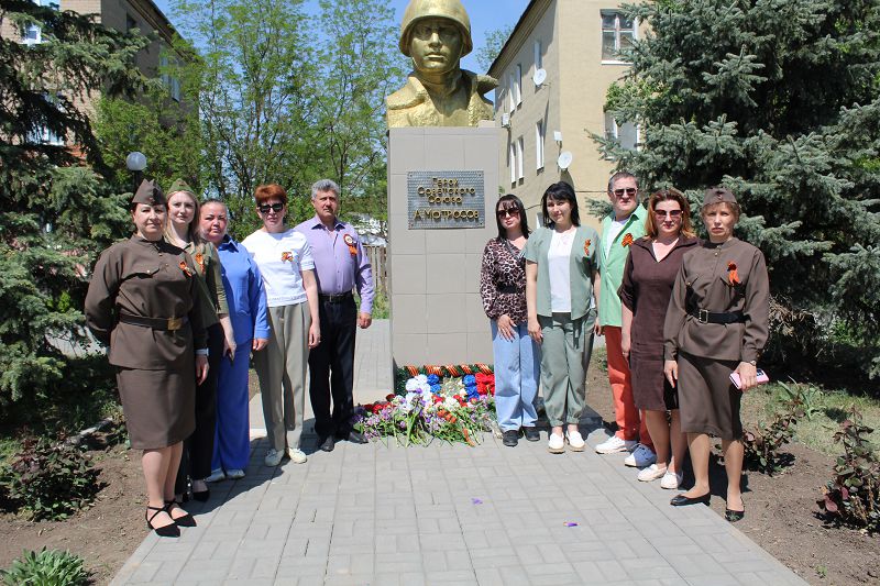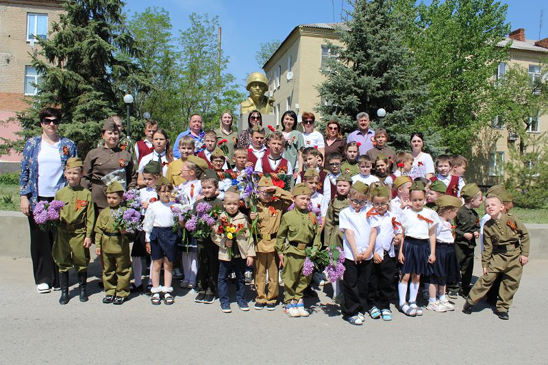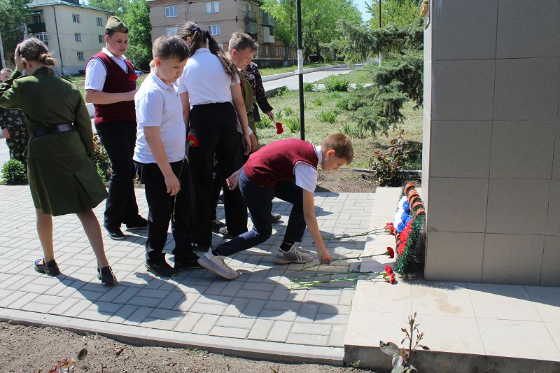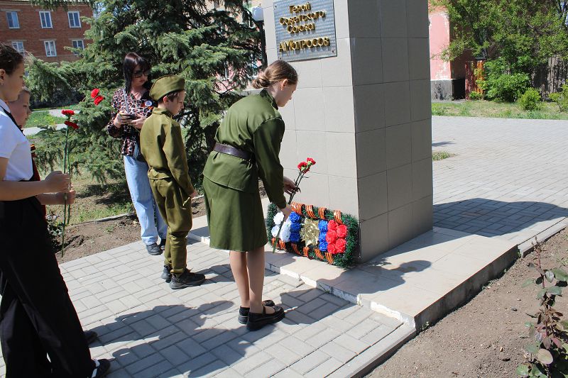 В честь празднования 80-й годовщины Победы в Великой Отечественной войне обучающиеся Углегорской школы совместно с Главой Углегорского сельского поселения, работниками Администрации и работниками и воспитанниками филиала МБОУ Углегорской СОШ д/с «Вишенка» возложили цветы к памятнику А. Матросову.