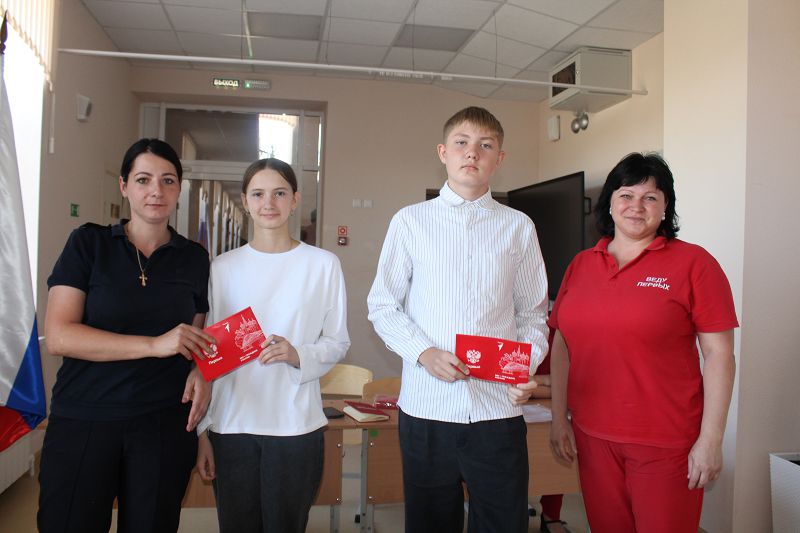 Светлана Александровна обратилась к школьникам о вступлении в Движение первых и поблагодарила юных активистов школы модными обложками на паспорт.