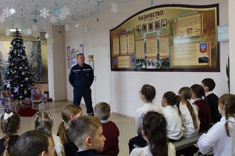 В нашей школе для обучающихся прошла профилактическая беседа в преддверии новогодних каникул. Начальник ПСГ Тацинского отряда А. Ермоленко рассказал ребятам об опасностях, которые таит тонкий лед на водоемах в осенне-зимний период. Важно, чтобы дети понимали: игры вблизи замерзших рек и озер могут быть очень опасны для жизни.
